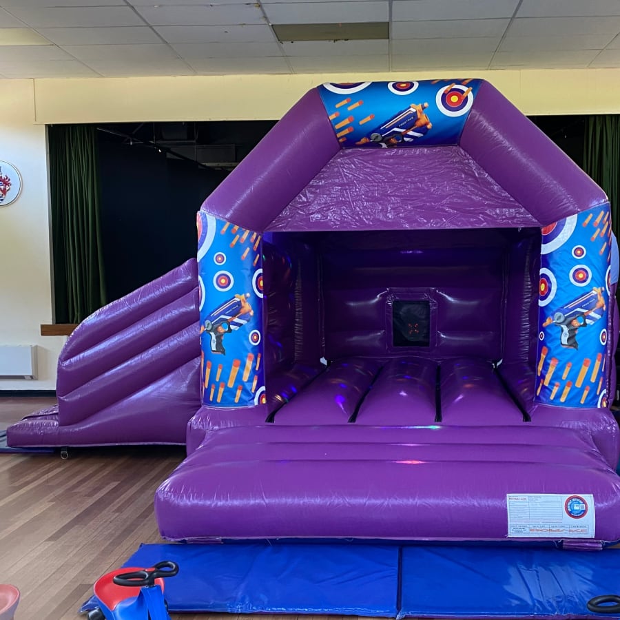 Purple Slide Disco Bouncy Castle with Nerf Theme