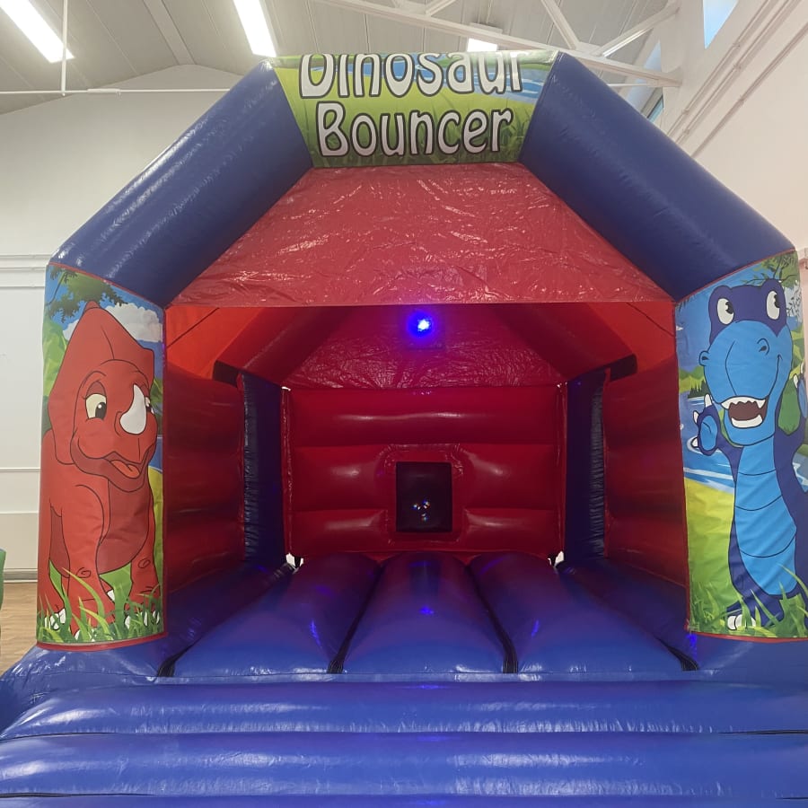 A red and blue bouncy castle with dinosaur Velcro stick on artwork for the front panels. Jump and shout in this all singing all dancing bouncing inflatable. complete with built-in disco party lights and a Bluetooth speaker allowing you to play your own music from any smart phone or table. Not what you're looking for? Why not check out our Full hire catalogue