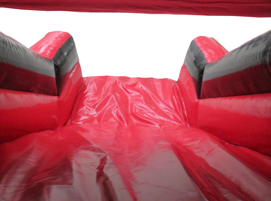 Inside this vibrant red and black inflatable obstacle course their are various challenges suitable for both children and adults, offering hours of fun for everyone, its a perfect choice for any event.