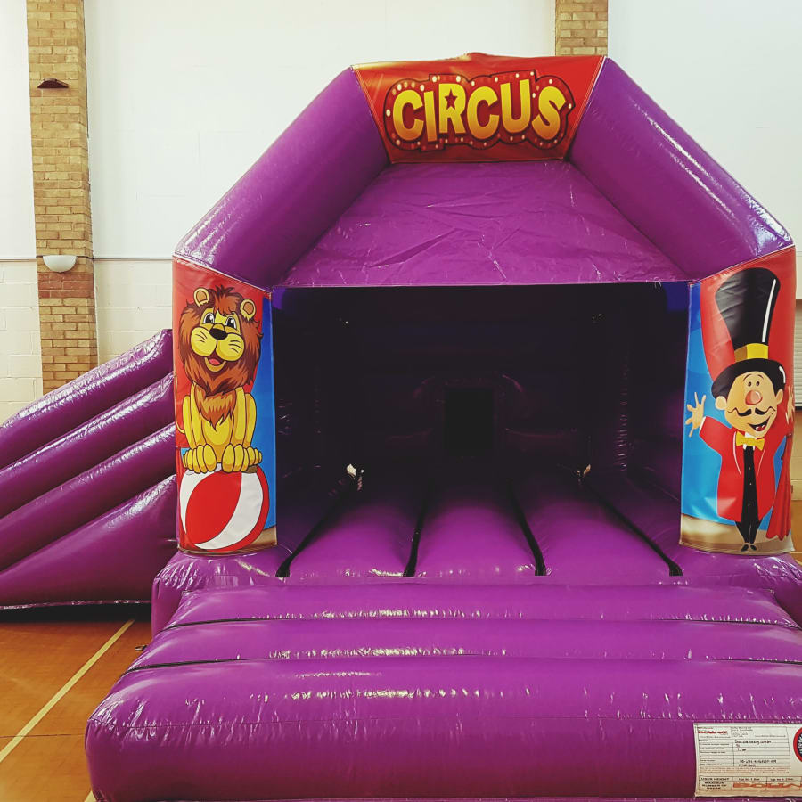 Circus bouncy castle with slide hire purple