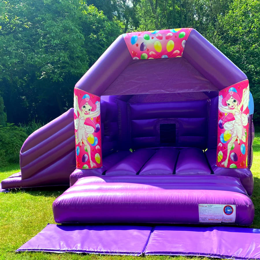 A beautiful purple bouncy castle with a slide on the side. Our fairy with balloons slide combo would make a gorgeous additions to any fairy tale or princess fancy dress Birthday party. This page is for ordering bouncy castle only, but if you would like to upgrade me to Disco! by adding disco lights and a speaker click here Fairy Disco Slide Combo Purple Our fairy bouncy castle is frequently hired for lots of different kinds of celebrations and events but if you would like something different take a look at our Full hire catalogue
