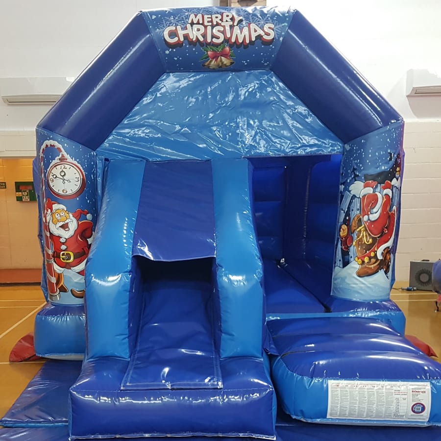 Christmas bouncy castle with slide blue