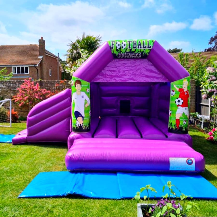 A fanatic choice for football fans and a popular bouncy castle it is too. Kids who love footie will enjoy bouncing and sliding when you order our exciting football bounce n slide combo. This page is for booking as standard but if you would like to upgrade me to Disco! by adding disco lights and a Bluetooth speaker please click here Football Disco Slide Combo Purple Our football bouncy castle with slide is hired for lots of different kind of parties and events.