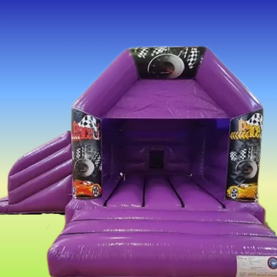 You can now find this purple Race Cars bouncy castle with slide available to hire in our discounted Party Packages coupled with either our Soft Play Sets, Didi Car Race Track with 8 Didi Cars, Ball Pools or Nerf Target Shoot.