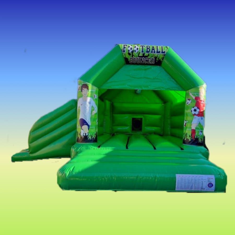 Our football bouncy castle with slide is hired for lots of different kind of parties and events.