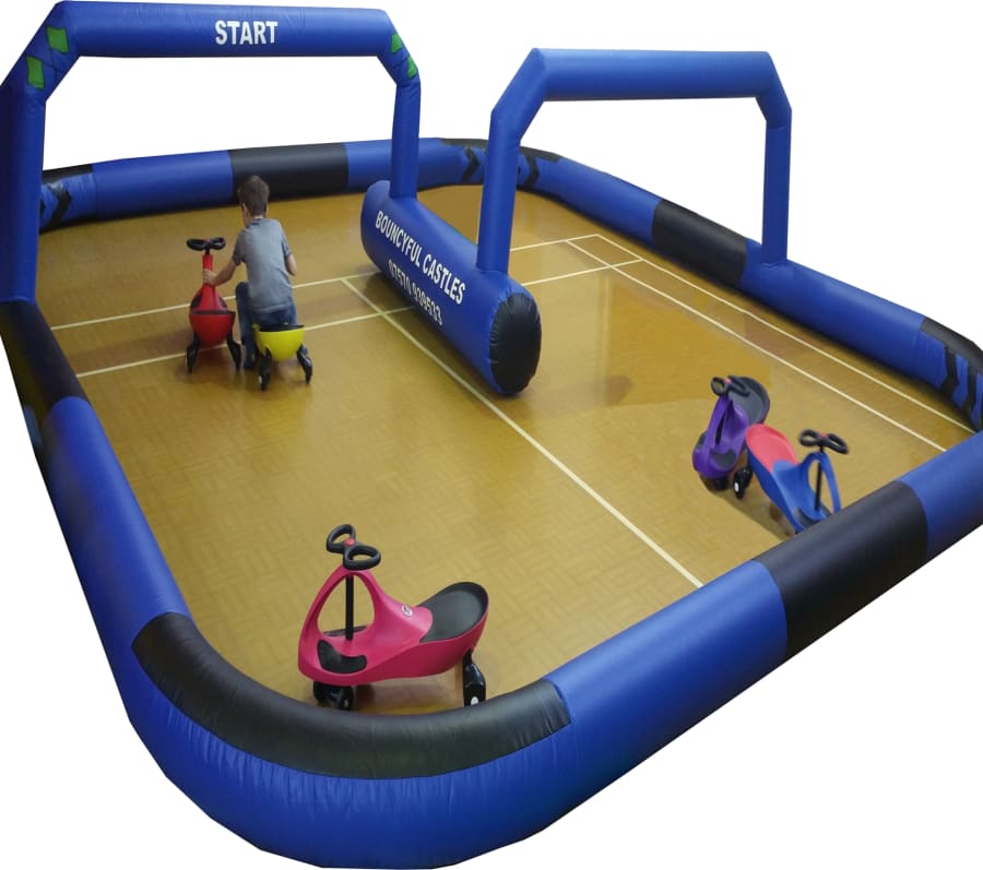 Thanks to the inflatable racetrack, you don't have to worry about crashing into the walls - you'll simply bounce harmlessly off them!