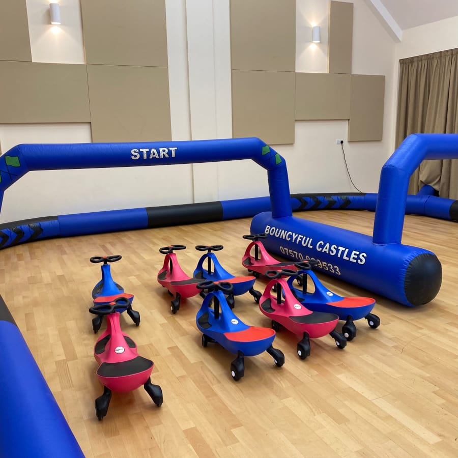 Race around an inflatable track with our Didi cars to see who is the crowned champion Didi car racer! Didi cars are a relatively new invention but they look set to revolutionise child transport - just move the handlebars to propel the car forward and to build up speed.