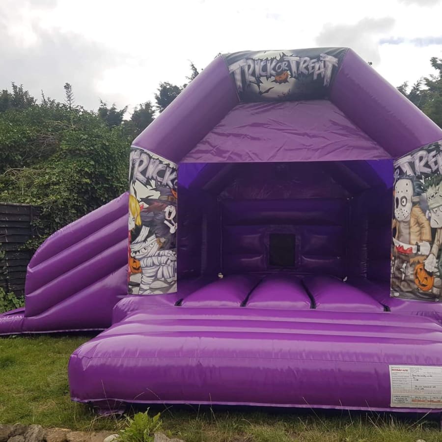 A purple slide bouncy castle with Halloween theme Velcro stick on artwork for the front entrance. This bouncy castle would be a fantastic addition to any Halloween party or event. Complete with Disco lights and a built in Bluetooth speaker. Children will love jumping, singing and dancing in this beautiful bouncing castle. Not what you are looking for? why not check out our Full hire catalogue