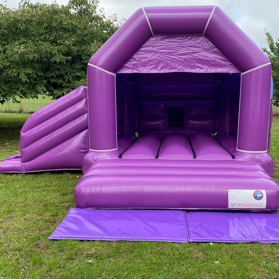 You can now find this purple bouncy castle with slide available to hire in our discounted Party Packages coupled with either our Soft Play Sets, Didi Car Race Track with 8 Didi Cars, Ball Pools or Nerf Target Shoot.