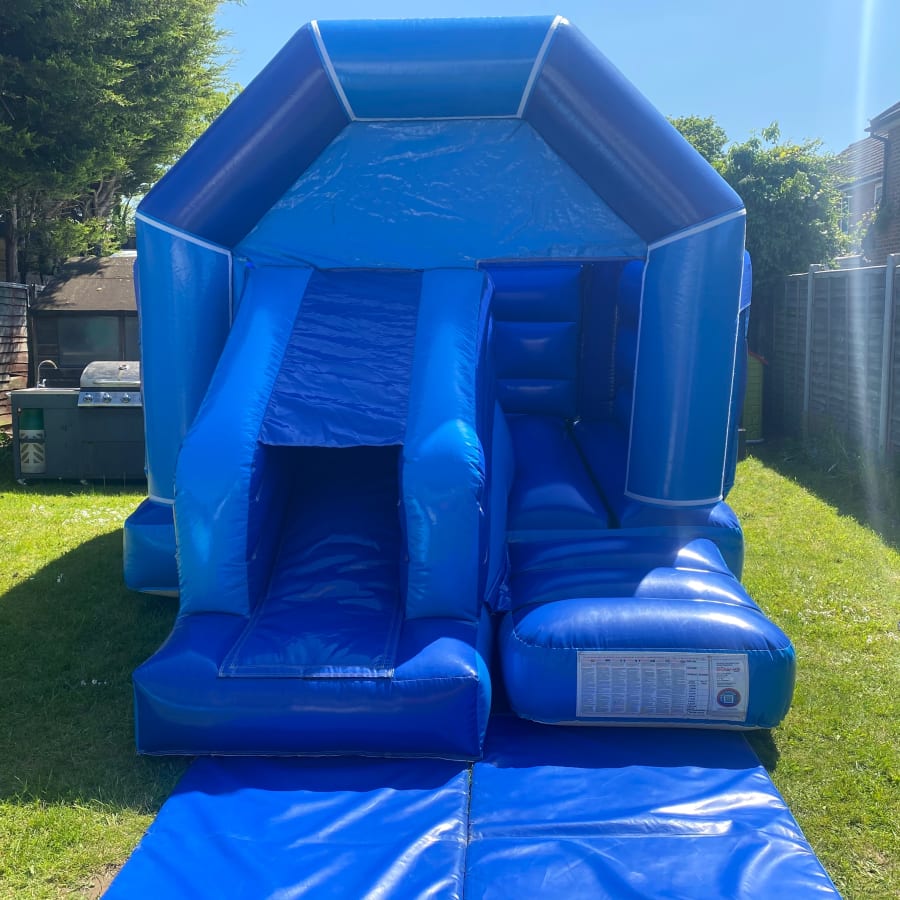 A plain blue bouncy castles with front facing slide, disco lights and a Bluetooth speaker which allow you to play any music from your smartphone. Perfect for keeping kids entertained at Children's Birthday parties. Not what you're looking for? Why not check out our Full hire catalogue