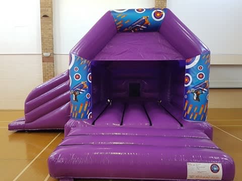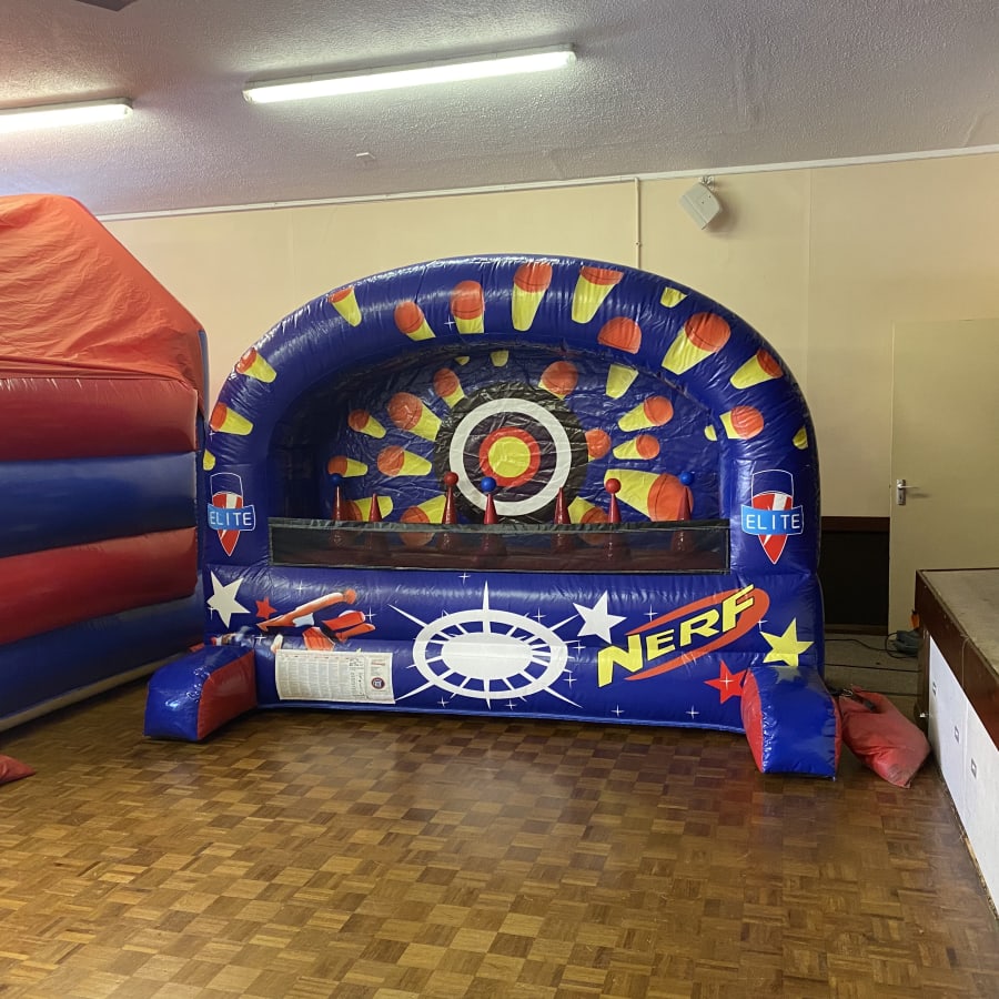 Have the ultimate Nerf themed experience and choose from 5 styles of bouncy castles and loads of different themed Velcro artworks.
