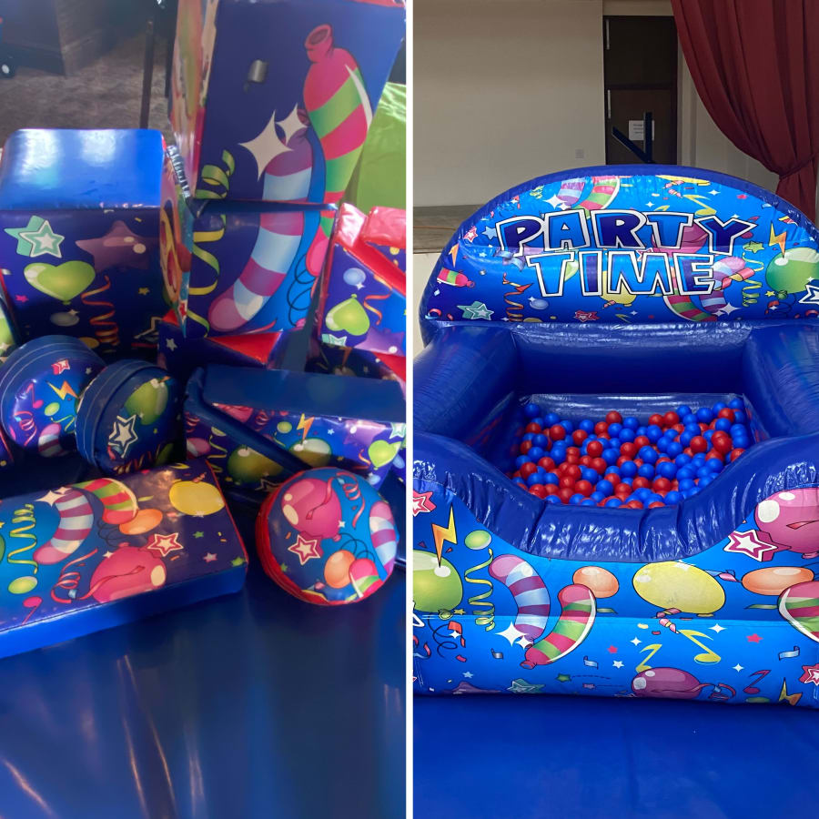 Party balloons and Emoji themed soft play package. A combination of two of our most popular themes for bouncy castle parties now available as soft play. Bouncyful Castles has had this product custom made by our manufacture so you wont find it anywhere else, This beautifully printed artwork has party balloons one side and playful funny Emoji's the other. A mix of soft shapes, stacking puzzle cubes, balancing blocks & stepping stones. A fun and entertaining way to learn motor functioning skills.