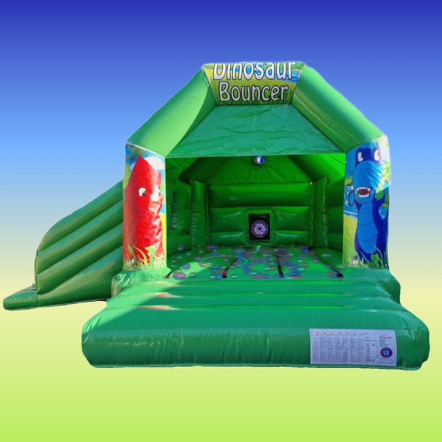 Dinosaur Disco Bouncy Castle With Slide Green
