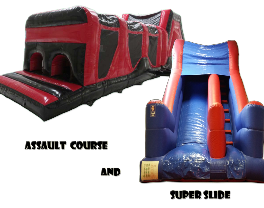 Unbeatable prices, this package is designed for school fairs, charity fundraisers and all types of events, if you are lucky enough to have a large garden you are also welcome to book for private parties. Our Assault Course is suitable for children and adults and the Inflatable slide is suitable of all ages children.