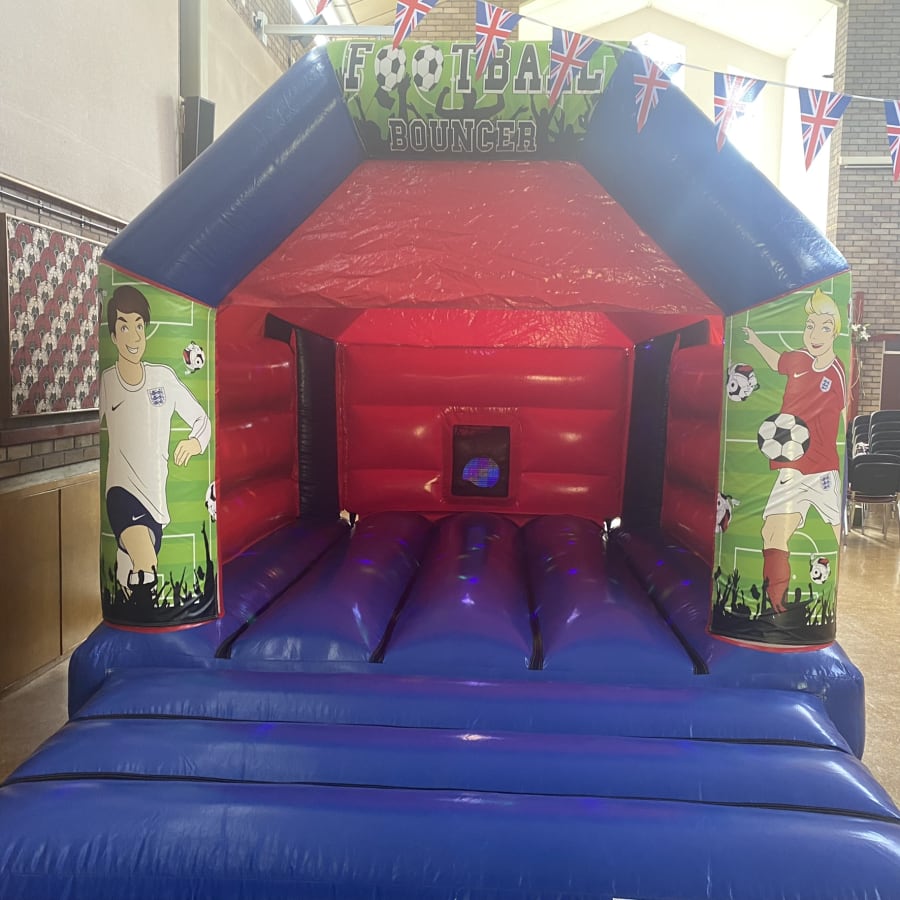 For an all singing and all dancing party this football themed disco castle is the right inflatable for you. Young football fans will love jumping when singing to their favourite tunes because this bouncy castle has built in disco lights and a Bluetooth speaker that's compatible with smartphones and tablets, you will be able to play your own music playlist! Not what you're looking for? Why not check our Full hire catalogue