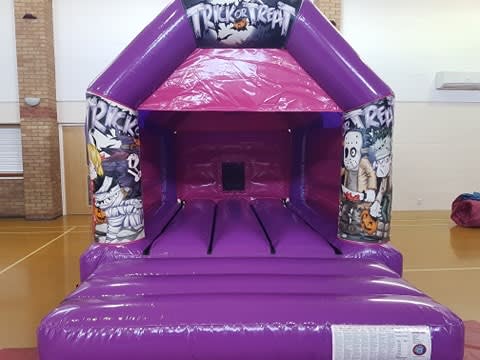 A pink and purple bouncy castle with Halloween theme Velcro stick on artwork for the front entrance. This bouncy castle would be a fantastic addition to any Halloween party or event. Complete with Disco lights and a built in Bluetooth speaker. Children will love jumping, singing and dancing in this beautiful bouncing castle. Not what you are looking for? why not check out our Full hire catalogue