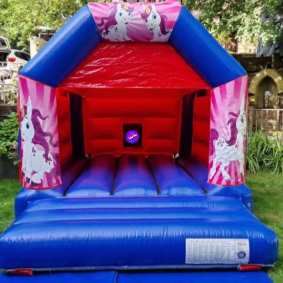 Unicorn Disco bouncy castle hire red & blue